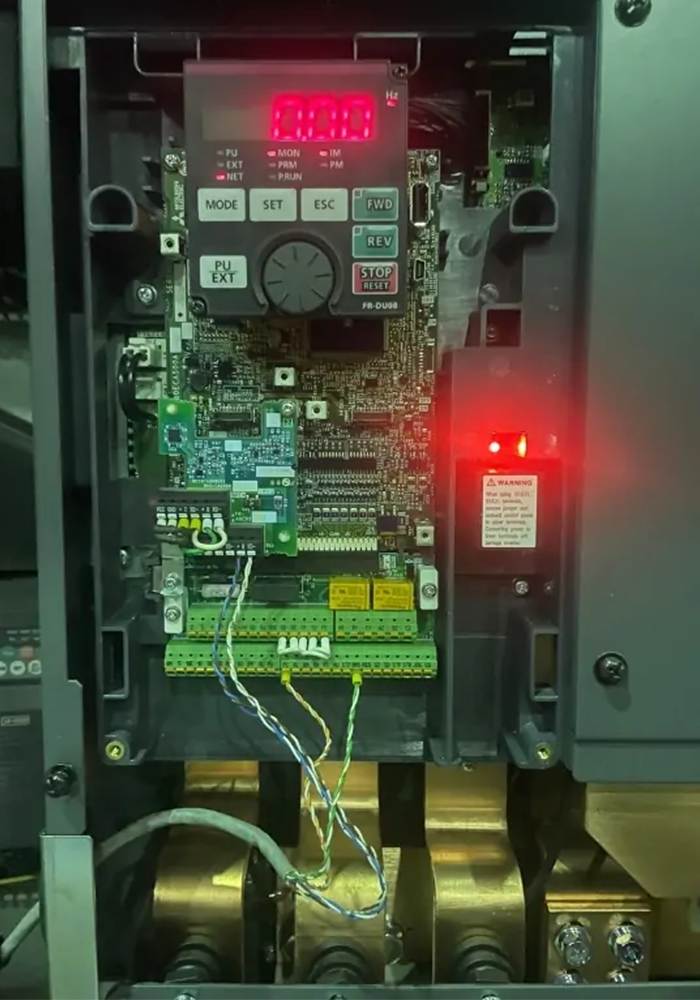 Mitsubishi markalı 355 kW-lıq invertorun elektron komponentləri, güc modulları və idarəetmə blokları detallı şəkildə yoxlanılmışdır. Aşkar edilmiş nasaz hissələr dəyişdirilmiş, enerji ötürmə sabitliyi bərpa edilmiş və invertorun funksionallığı tam şəkildə təmin olunmuşdur.