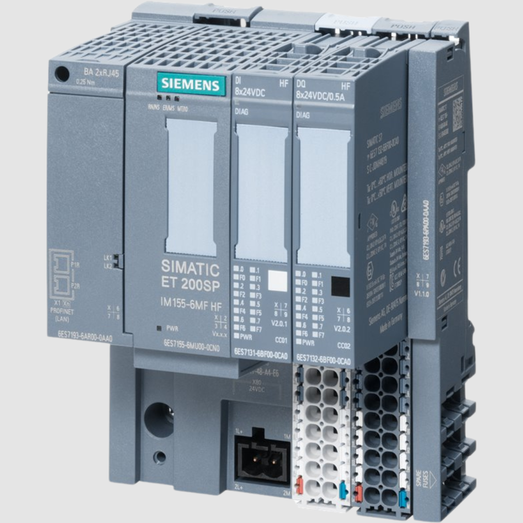 Siemens SIMATIC ET 200SP çoxsahəli avtobusdur, 2 portlu interfeys moduludur, IM 155- 6MF High Feature, PN IO, Ethernet IP, Modbus TCP, avtobus adapteri üçün 1 slot, maks. 64 I/O modulu və 16 ET 200AL modulu, multihot swap